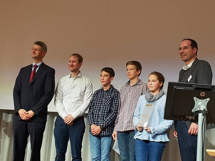 Bereits zum dritten Mal innerhalb von fünf Jahren wurde ein Projekt der Altmühltal-Realschule mit dem MINT21-Preis geehrt. Die Auszeichnung wurde im Rahmen einer feierlichen Verleihung am 21. November im Haus der bayerischen Wirtschaft in München verliehen. Der neu ernannte bayerische Kultusminister Prof. Dr. Michael Piazolo übergab den Preis im Beisein des betreuenden Lehrers Peter Nutz sowie des Schulleiters Harald Schuster an die Schüler Marie Frank, Leon Marschall und Valentin Schmailzl.