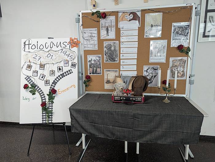 Schülerinnen und Schüler der Realschule Feuchtwangen gedachten der Opfer des Holocaust im Rahmen einer Ausstellung. Unter dem Leitspruch „Aus Erinnerung wächst Verantwortung“ setzten sie sich intensiv mit Einzelschicksalen auseinander. Symbolisch klebten die Jugendlichen einen Mosaikstein für jedes verlorene Leben und machten so deutlich, dass hinter jeder Zahl ein Mensch mit einer eigenen Geschichte stand.