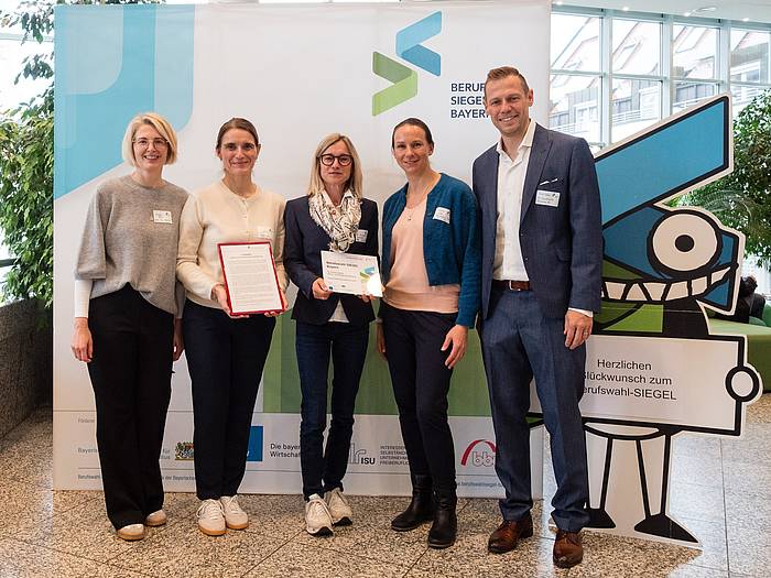 In Gersthofen wurde die Auszeichnung des Bildungswerks der Bayerischen Wirtschaft (bbw) an die Schulleiterin Ute Zimmermann, die stellvertretende Schulleiterin Simone Mayr, die KBO und erweiterte Schulleitung Susanne Saliji und die Fachschaftsleiterin der Wirtschaftswissenschaften Katharina Schuster feierlich übergeben.