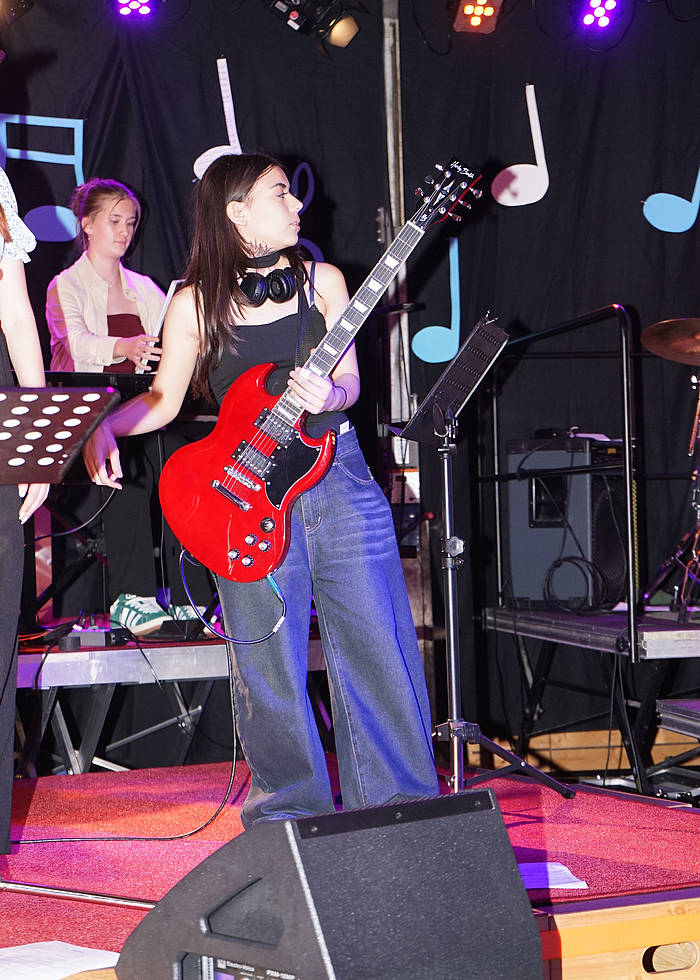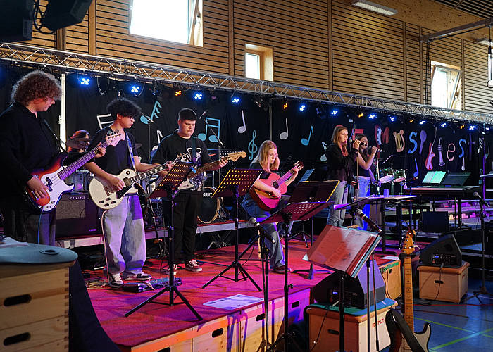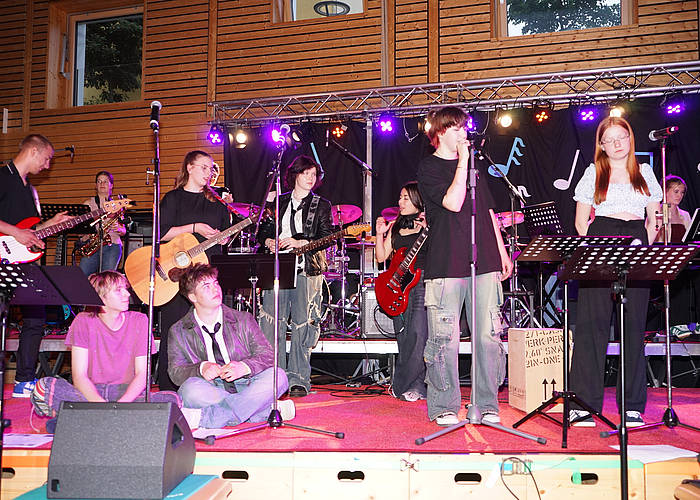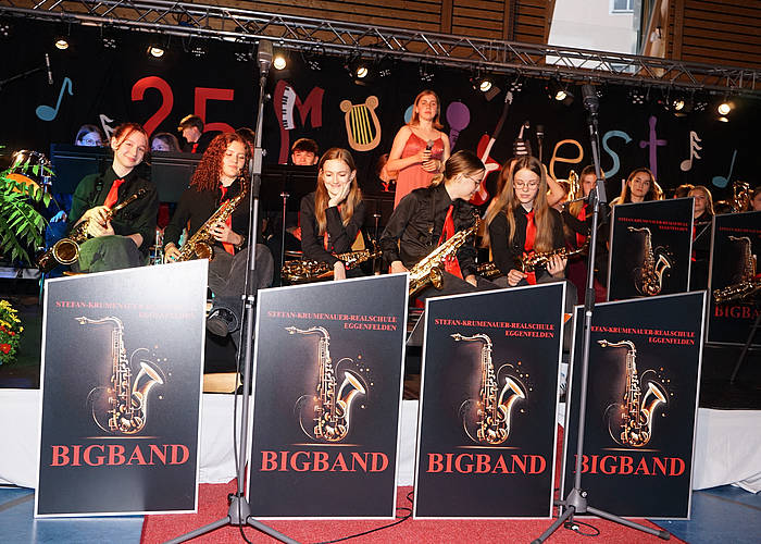 „Musik aktiv mit Begleitband“ der gastgebenden Schule bereicherten weiter mit Lenka‘s „The Show“ und „Feuerwerk“ von Wincent Weiss. Während eines kurzen Bühnenumbaus gab es einen Film der Videogruppe „50 Jahre Realschule Simbach“ zu sehen und viel Applaus erntete die Junior Big Band aus Abensberg, die unter anderem „Smoke on the Water“ von Deep Purple auf die Bühne brachte. Anschließend ging‘s weiter mit der Big Band der Realschule Eggenfelden, die mit großartigen Musikklängen und Gesängen entzückte. Mit Stücken von Coldplay und Adele sorgte die Schulband aus Landau für Furore und zu „Get Back“ von den Beatles ging’s auch tänzerisch gewaltig ab. Der Chor der Realschule Riedenburg erfreute das Publikum mit unter anderem ihrer Interpretation von „Photograph“ von Ed Sheeran. Die Bands der Realschule Simbach begeisterten dann mit Songs von Taylor Swift.