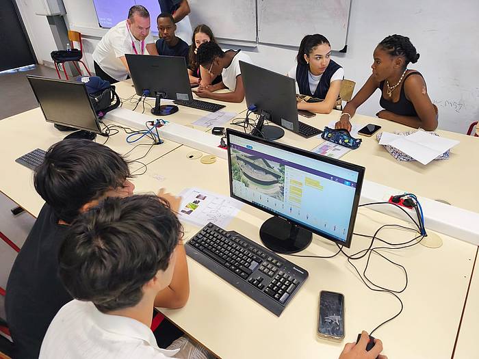 Außerdem arbeiteten die Schüler auch an der virtuellen Darstellung von zwei besuchten Orten, dem kolonialen “Fort Diamond” und der Inselgruppe “Îles du Salut”, auf die früher französische Gefangene gebracht wurden und die heute vielen Tieren wie Affen oder Schildkröten unter Palmen und im blauen Wasser ein Zuhause bietet.