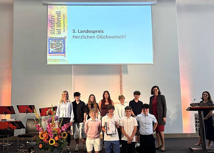 Am 11. Juli 2025 zeichnete Landtagspräsidentin Ilse Aigner im Bayerischen Landtag die Preisträger des Schülerlandeswettbewerbs „Erinnerungszeichen“ aus, dessen diesjähriges Thema „Mittelalter ist überall – Spurensuche...