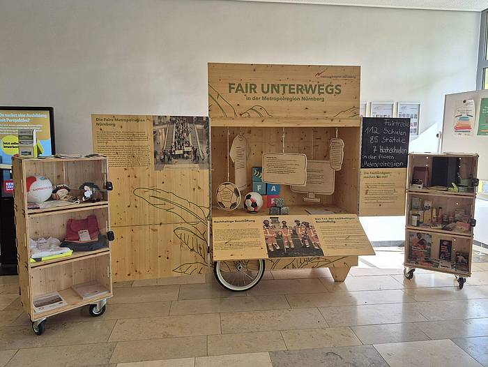 Die Wanderausstellung „fair unterwegs“ ist aktuell im Eingangsbereich der Dr.-Ernst-Schmidt-Realschule zu sehen (Foto: Anja Kilian).