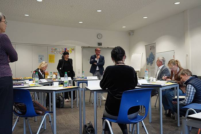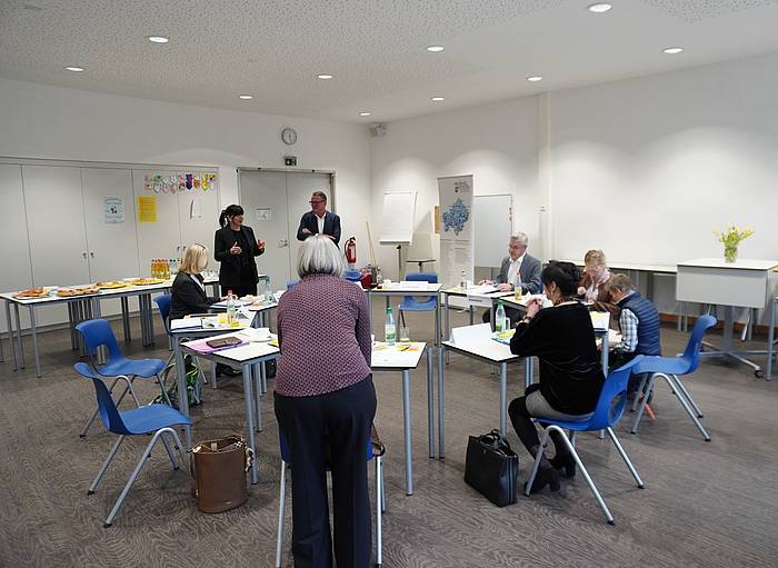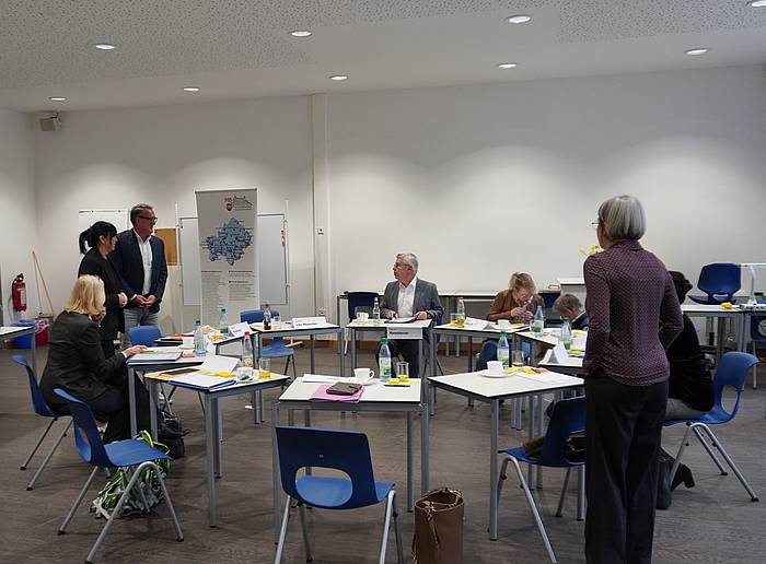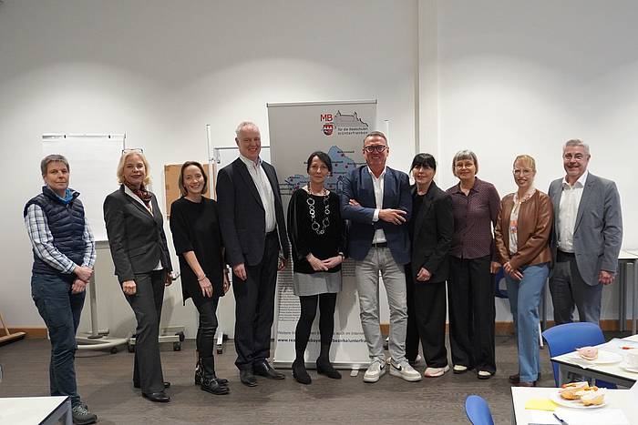 v.l.: Dr. Korinna Thiem (Universität Würzburg), Dr. Susanne Weizendörfer (Regierung), Christina Hartmann (Krick-Verlag), Bernd Fröhlich (Sparkasse Mainfranken), Andrea Kotzbauer (Bayerischer Realschullehrerverband), Jürgen Meissner (Lichtagentur/Würzburg Baskets), Carmen van Musscher (MB-Dienststellle), Andrea Sitzmann (Handwerkskammer), Tanja Olbrich (MB-Dienststelle), Marcus Ramsteiner (Ministerialbeauftragter)