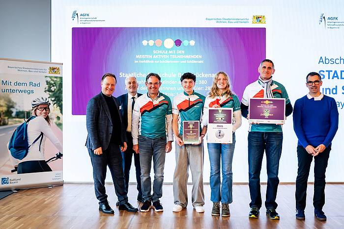 Große Freude an der Staatlichen Realschule Bad Brückenau: Beim landesweiten Wettbewerb „Schulradeln“ wurde die Schule in München mit dem 1. Preis in der Kategorie „Radelnde Schüler im Verhältnis zur Schülerzahl“ ausgezeichnet.