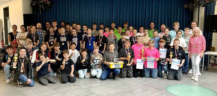 Bereits zum fünften Mal fand an der Realschule Bessenbach die unterfränkische Roboter-Meisterschaft statt. Insgesamt traten 26 Teams aus 11 Realschulen an und präsentierten Anfang Juni ihre Fähigkeiten beim unterfränkischen Regionalentscheid 2025. Dabei gab es die beiden Wertungsklassen „Einsteiger“ und „Fortgeschrittene“. Alle Teams waren beim Konstruieren und Programmieren der selbstgebauten Roboter in diesem Jahr stark gefordert, denn die Anforderungen waren sehr vielfältig. Bei den vielen spannenden Wertungsläufen änderten sich deshalb ständig die Platzierungen der Teams.