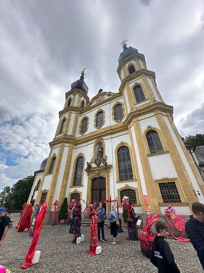 Neben dem künstlerischen und kulinarischen Angebot konnten die Gäste auch an kleinen Führungen durch das Käppele teilnehmen. Hier erklärten die Schülerinnen und Schüler mit beeindruckender Sachkenntnis die Bau- und Kunstgeschichte sowie die spirituelle Bedeutung des Wallfahrtsorts. So verbinden sich Kunst, Glaube und gesellschaftliches Engagement.